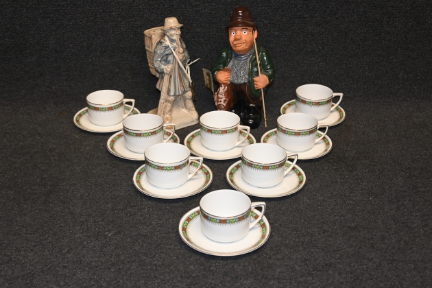 1. Parti kaffekoppar m fat 8st sekelsk 18/1900.tal "Rörstrand" + 2st figuriner bl a Rolf Bergh