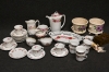 Parti kaffekoppar m fat, kaffekanna, gallerfat, blomkrukor