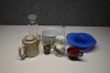 Parti karaff, blomkruka, vas & skål i konstglas m.m