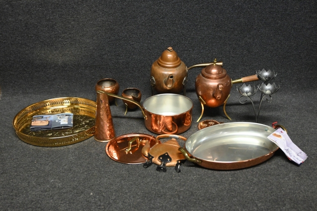 120. Parti kopparföremål, bricka Scandia Guld