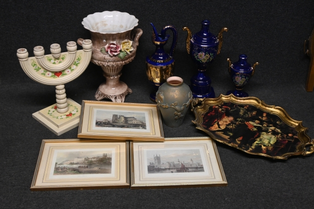 Parti lampfötter, keramik, tavlor, bricka