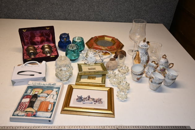 Parti ljuslyktor, punchmuggar, tavlor, spegel, kaffeservisdelar m.m