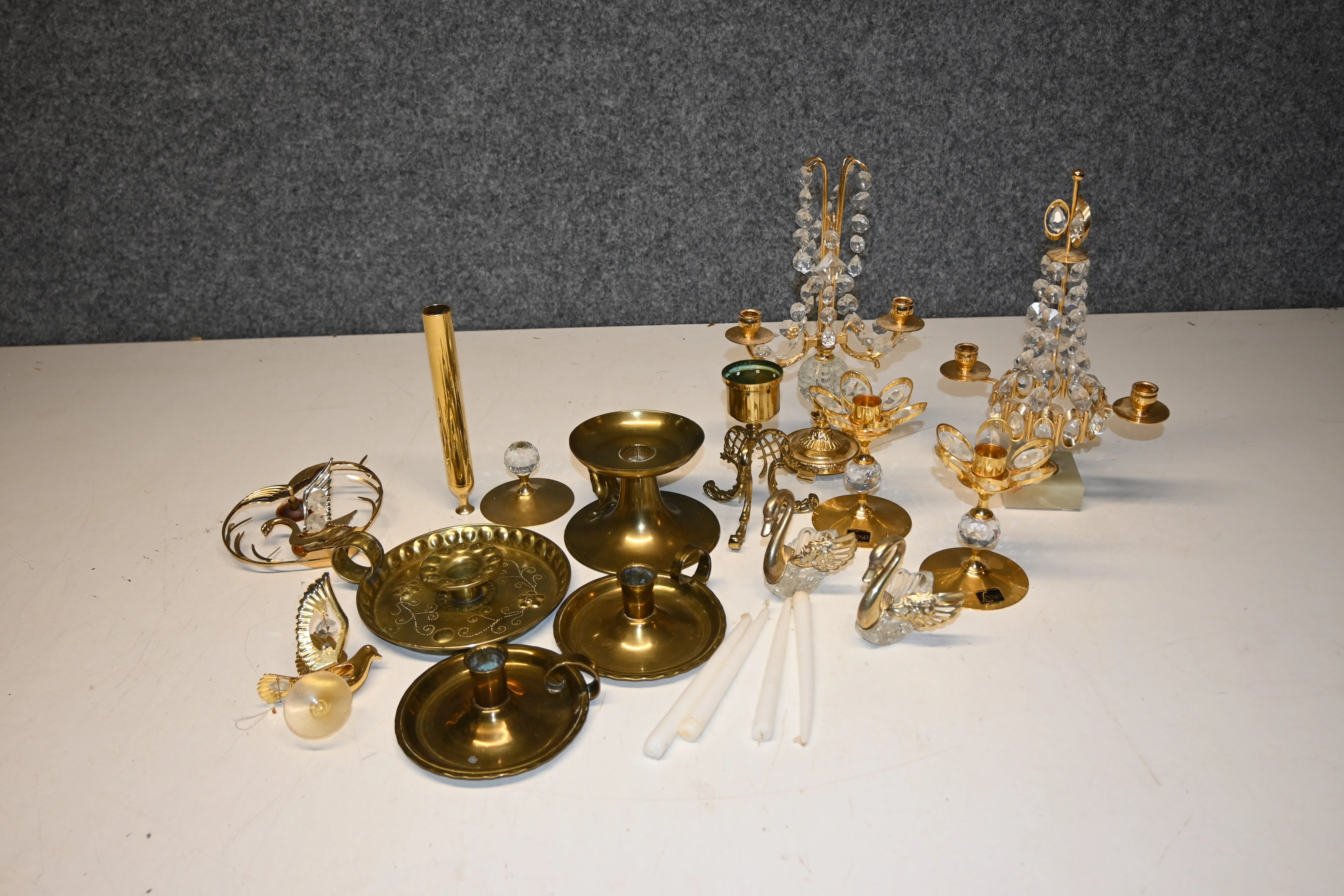 735. Parti snapsglas, karaffer, plåtburk, skålar m.m