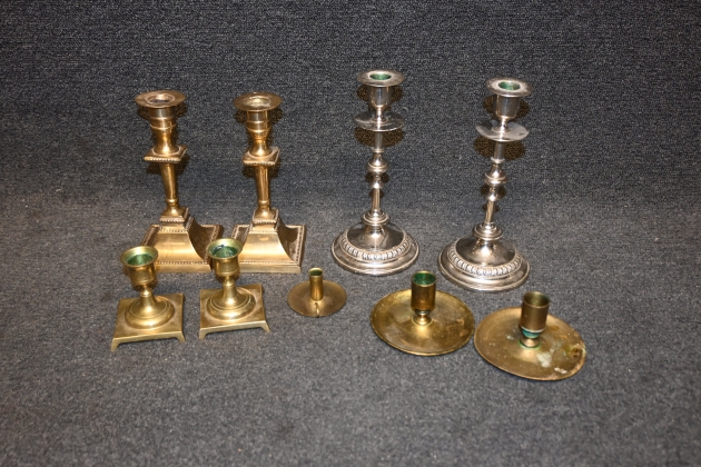 385. Parti ljusstakar i mässing och nysilver