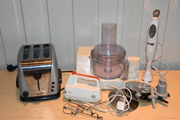 Parti matberedare, brödrost, stavmixer, elvisp (samtliga fungerar)
