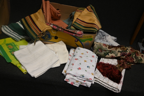 76. Parti div dukar bl a broderat, hemvävda löpare