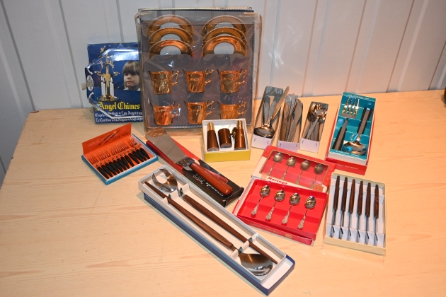 131. Parti moccakoppar, bestick retro (oanvänt)