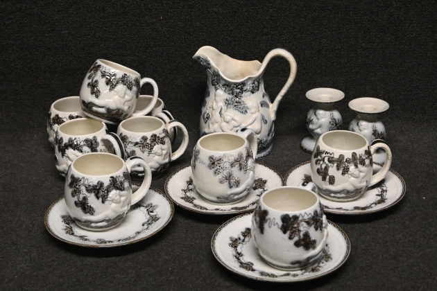 Parti muggar, fat, tillbringare, ljusstakar, Gefle/Ue "Mullbär"