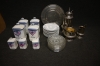 Parti nickelservis, assietter Bl a UE , kryddburkar i porslin (skador)