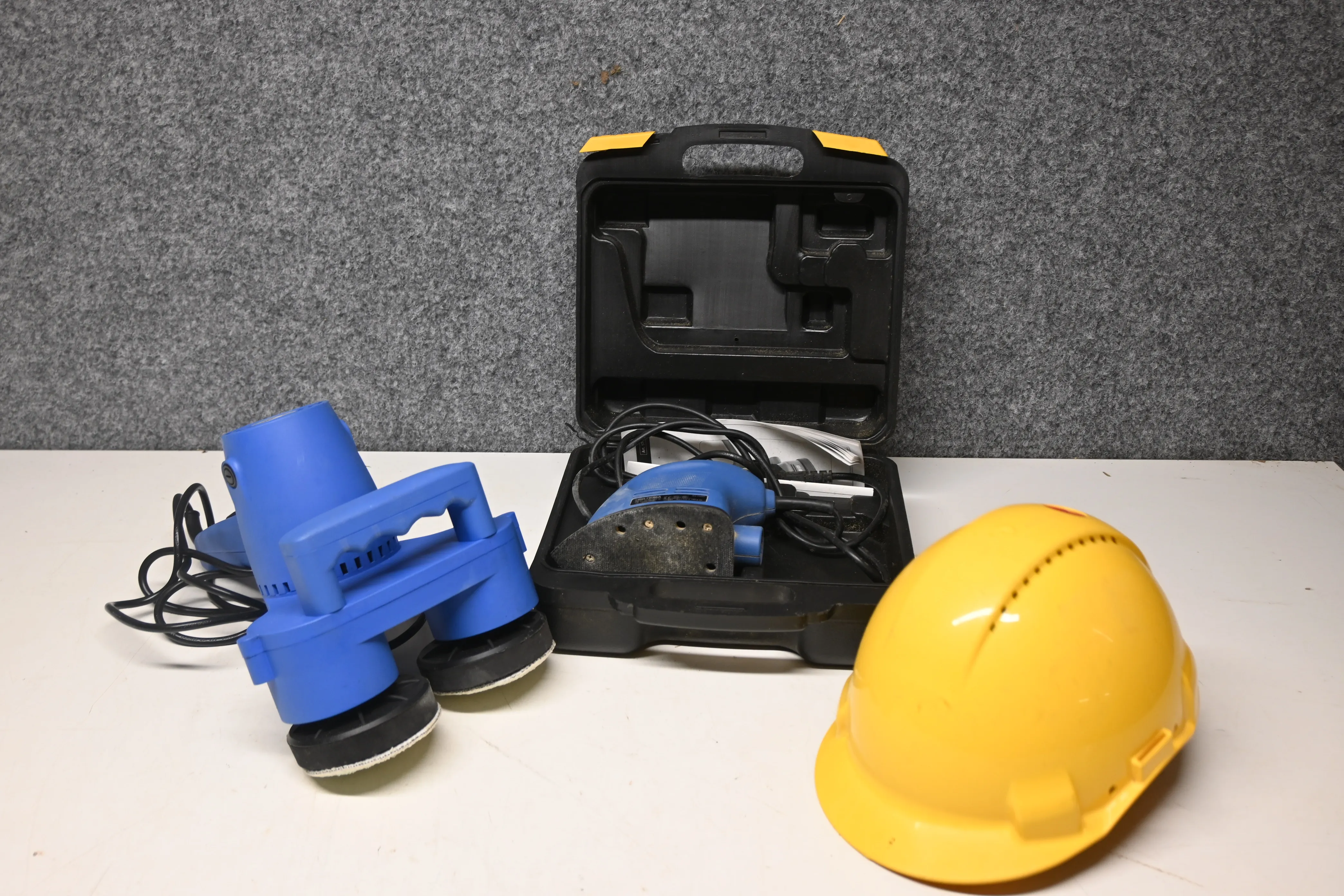 265. Parti polermaskin, slipmaskin (fungerar), skyddshjälm