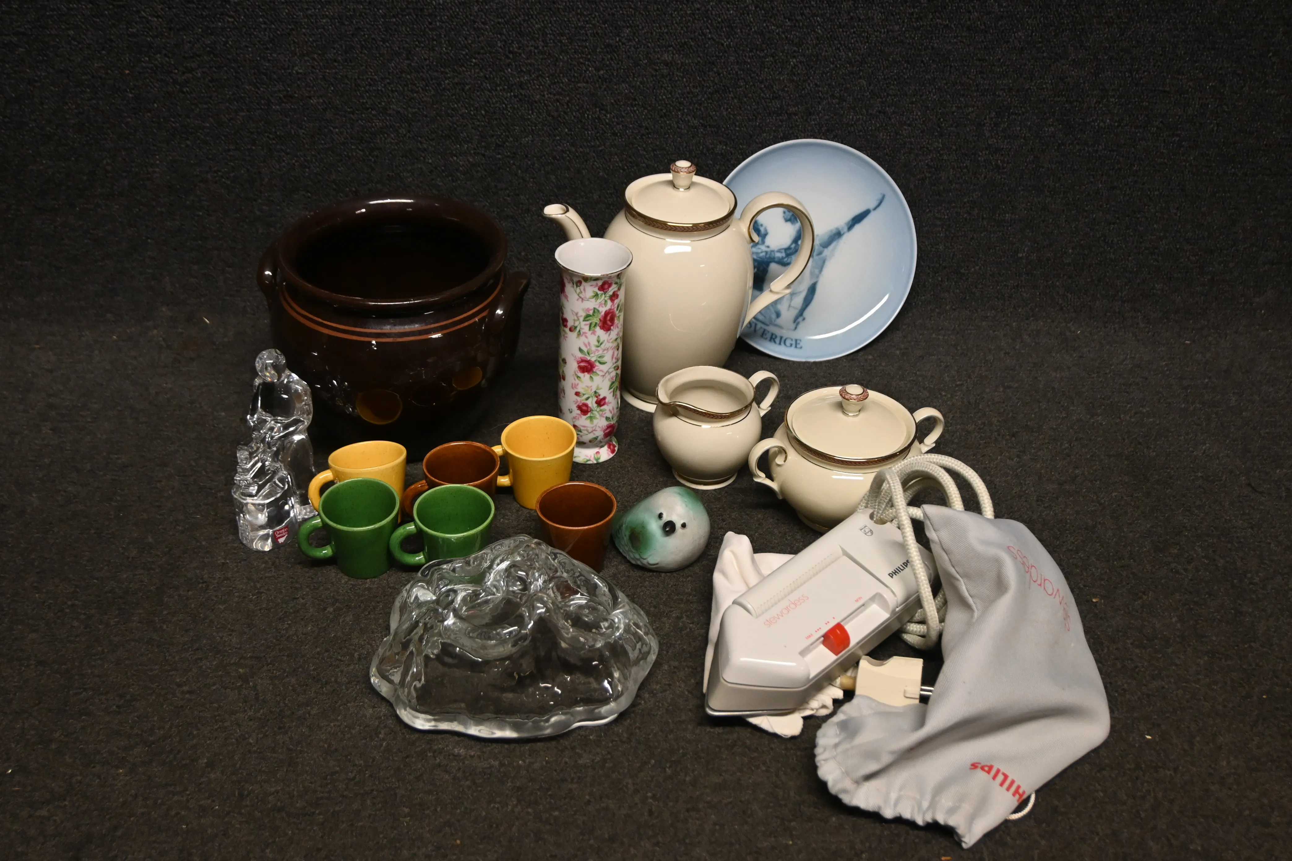 Parti porslin bl a Bo Fajans, figurin Orrefors, resestrykjärn m.m