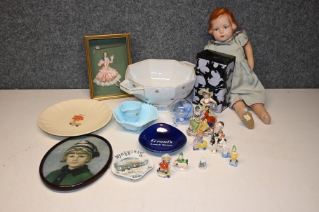 734. Parti porslin, miniatyrer, äldre docka m.m