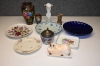 Parti porslin, smörask, burk med lock handmålad, vaser
