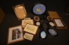 508. Parti bordstelefon Doro, fiskedon, träskålar bl a E.L Tasserud, Kamera
