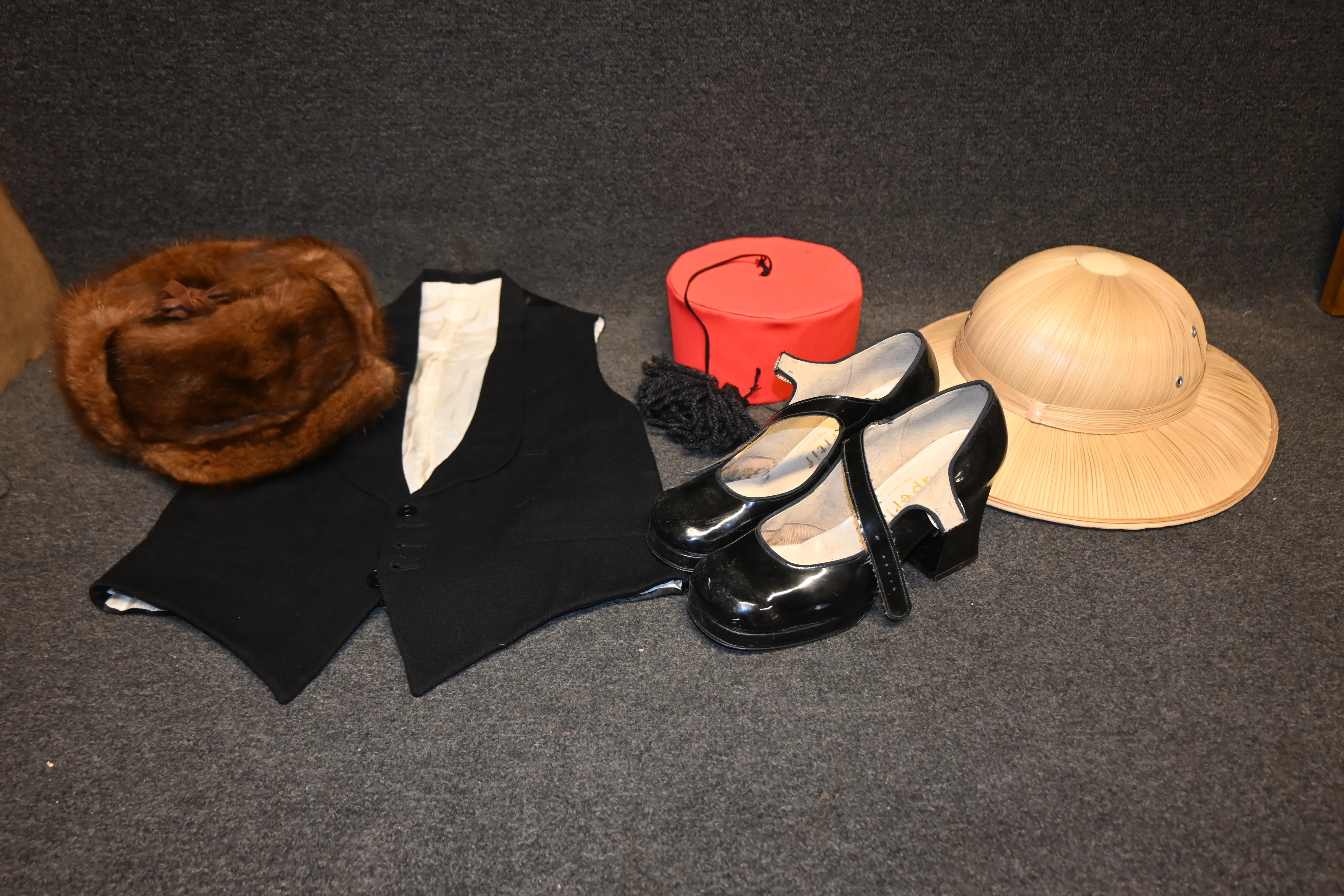 Parti safarihatt, väst, damskor vintage m.m