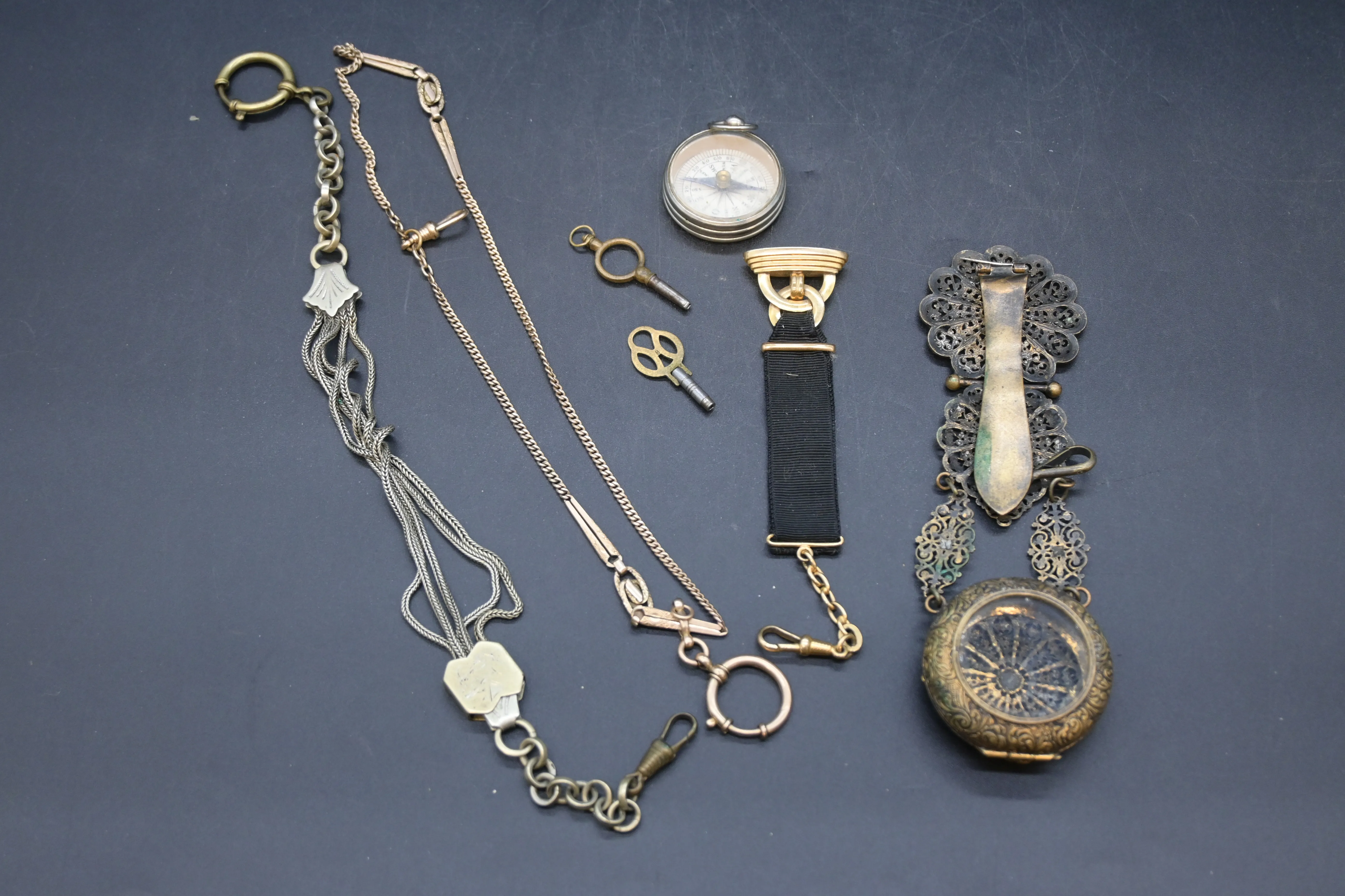 554. Parti skyddsfodral (mormorsur), fickurkedjor m.m