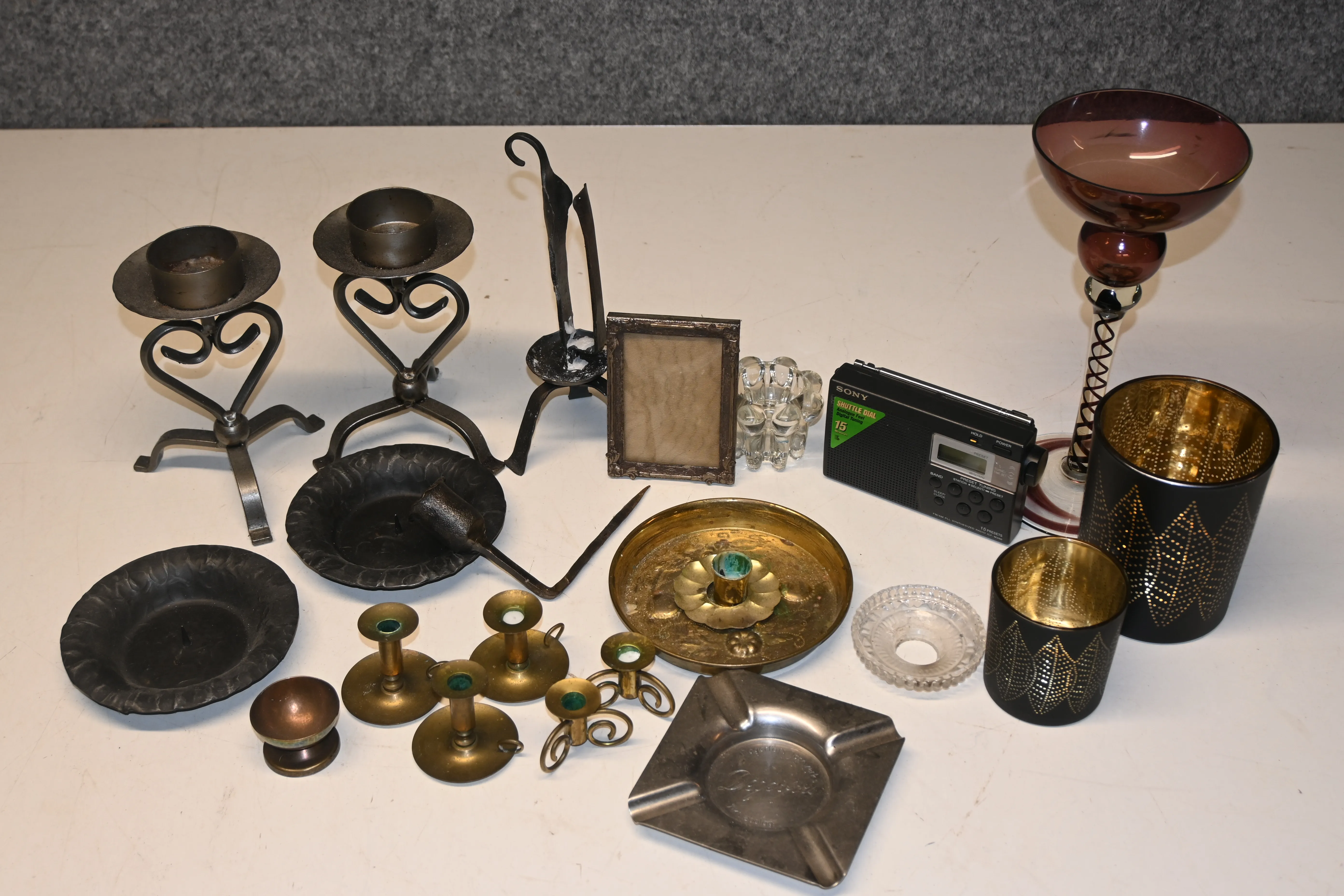 Parti smide bl a stumpstake, miniatyr ljusstakar i mässing, ljuslyktor m.m