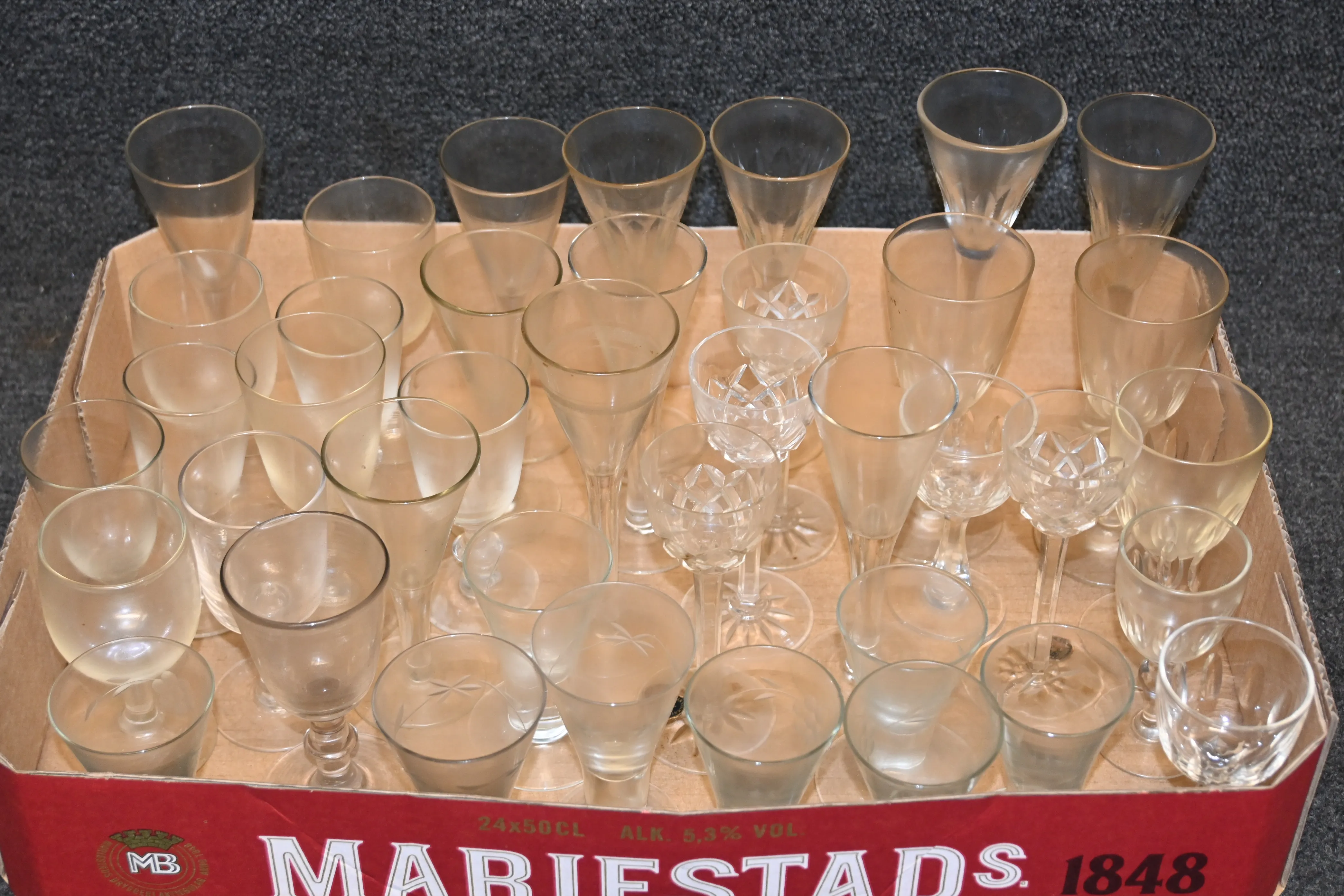 9. Parti snapsglas mestadels munblåsta 1800.tal