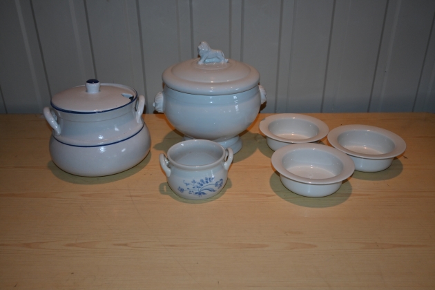 Parti soppterriner bl a Krögarhuset, skålar Arabia, kruka Gustavsberg