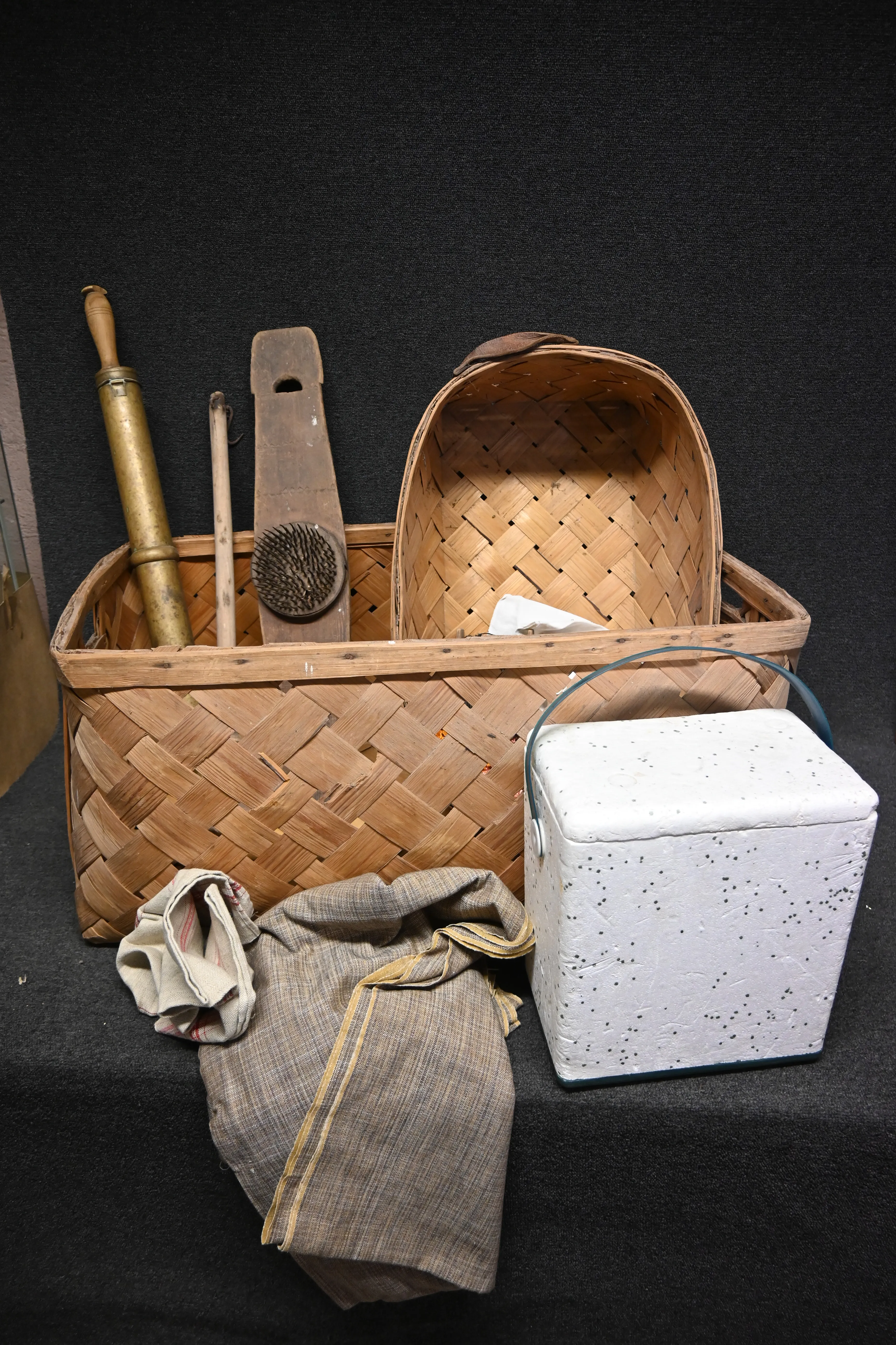 439. Parti spånkorgar (defekter), div allmoge m.m