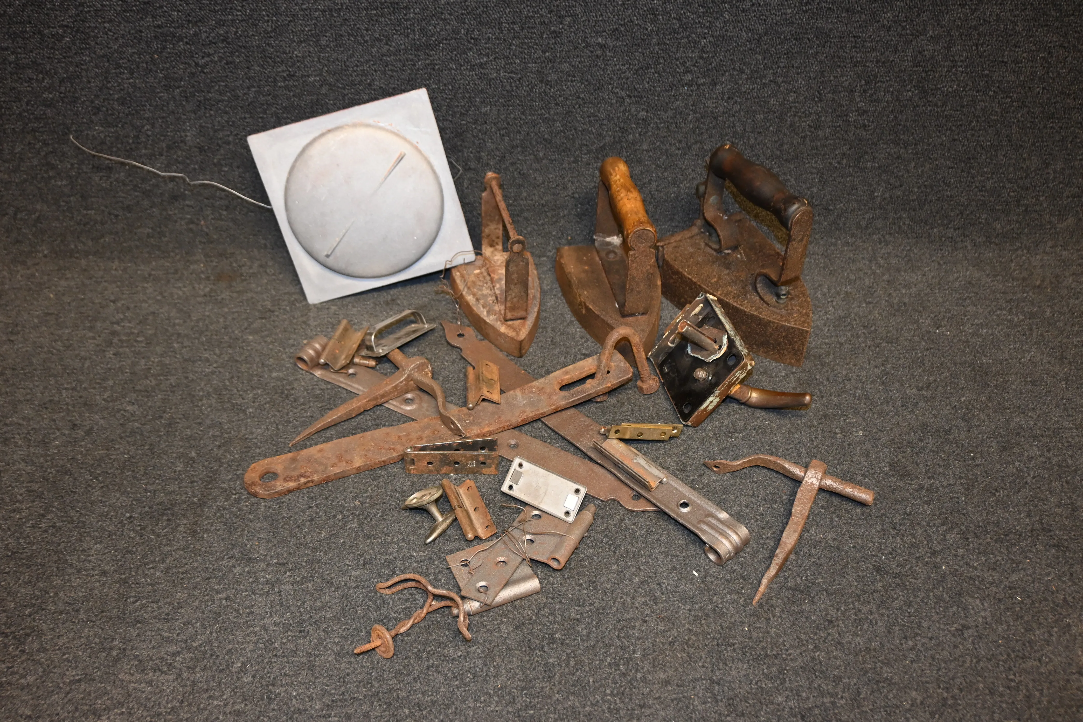 332. Parti strykjärn, ventil, gångjärn m.m
