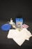 Parti tallrikar, fönsterlampa, ljuskrona, kökshanddukar (fläckar förekommer)