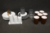 Parti tallrikar, muggar, ljuslyktor, badrumsset