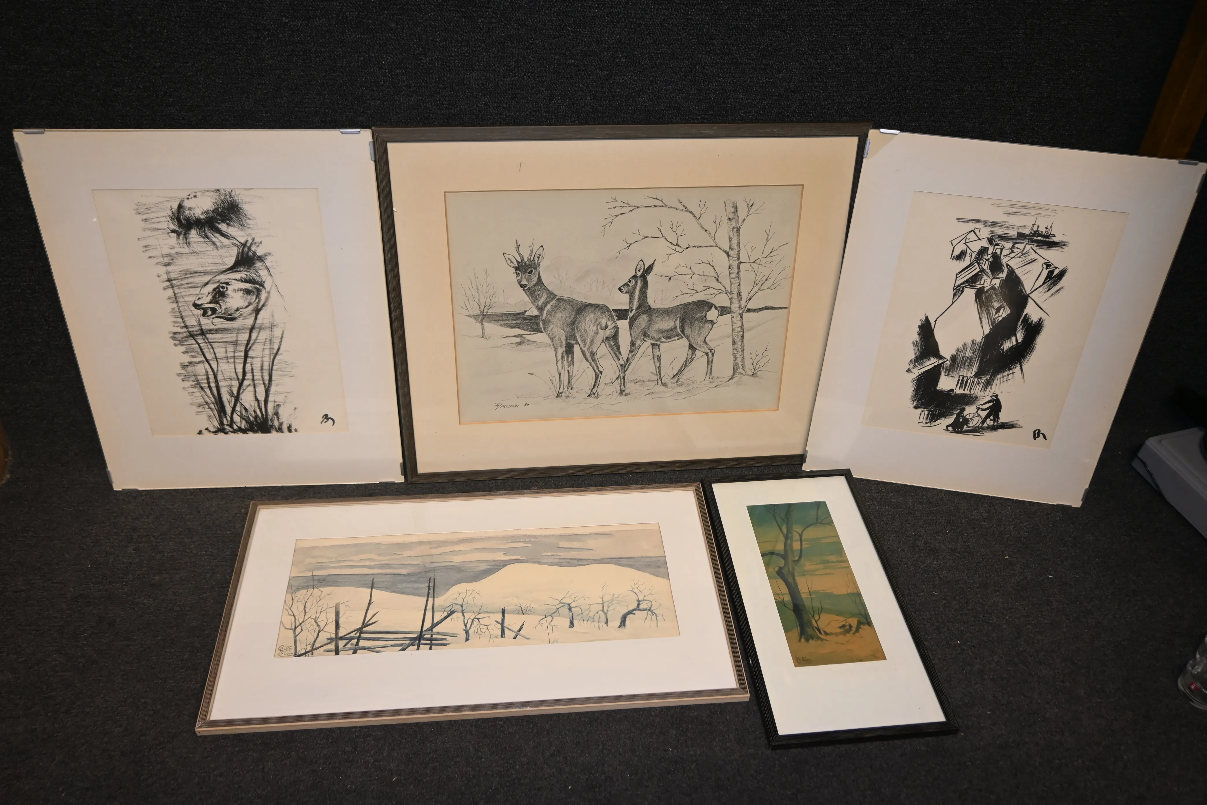 Parti tavlor bl a Blyerts Harry Wiklund (Ekshärad), akvareller 2st H.Simon