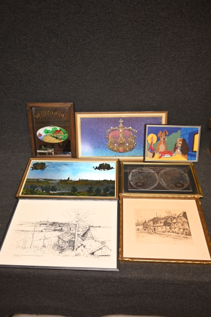 189. Parti fototavla, förvaringslådor i tyg 6st, böcker, rullgardiner 2st L.140 &160cm