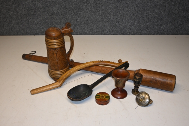 Parti träföremål 1900.tal, 1800.tals besman, stämpel m.m