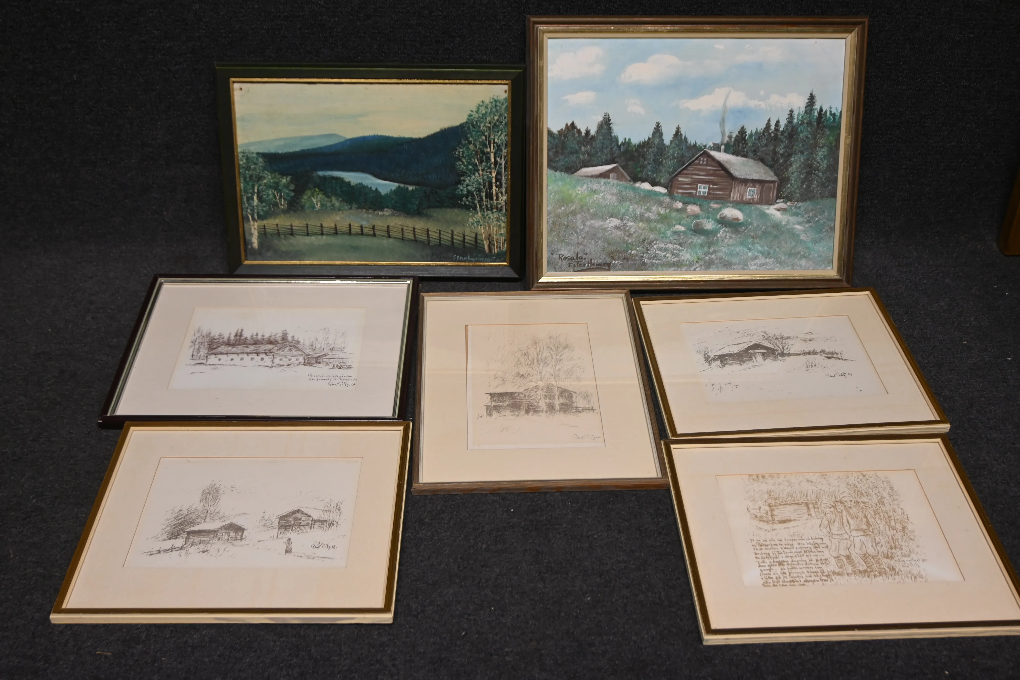 246. Parti tryck Piltz, målningar 2st bl a från Skrockaberget bär signatur
