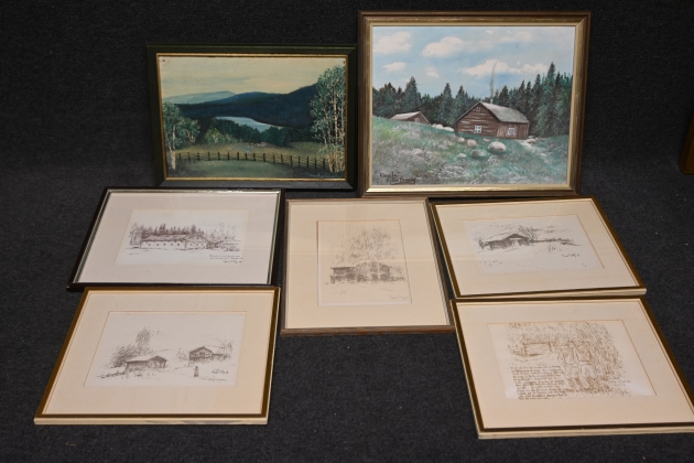 Parti tryck Piltz, målningar 2st bl a från Skrockaberget bär signatur