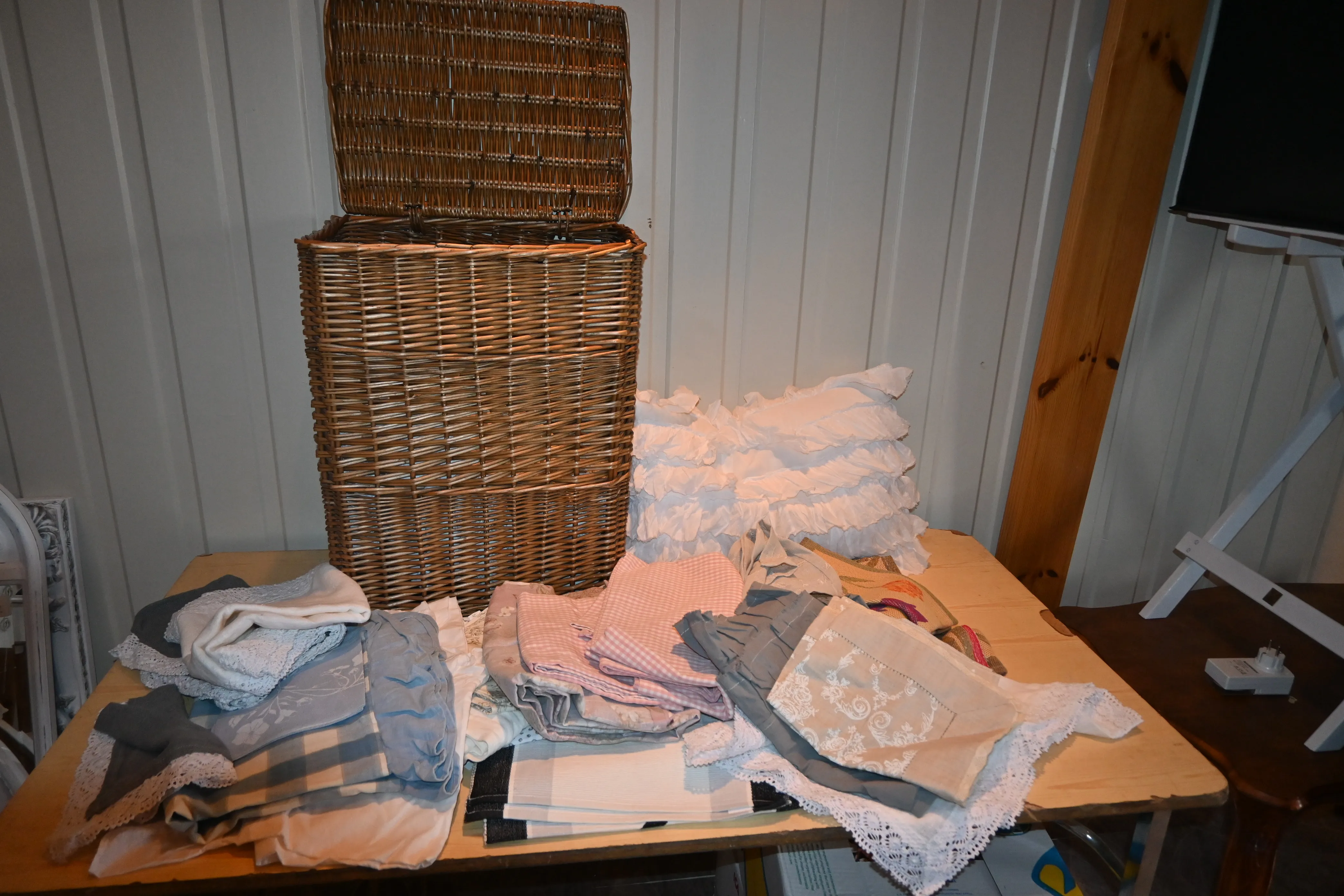 101. Parti tvättkorg, kuddfodral, dukar, kudde