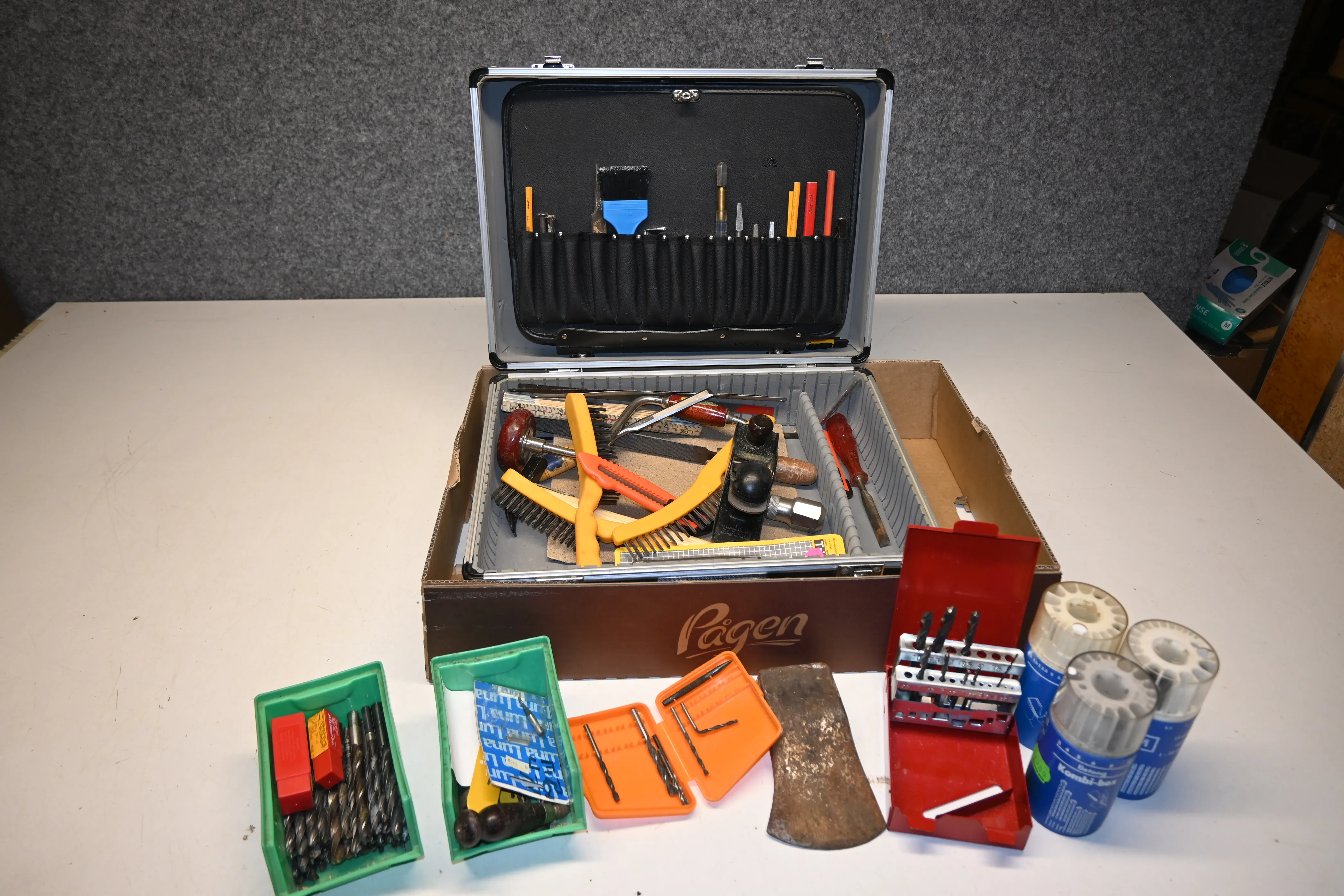 333. Parti bordslampor, varmvattenberedare (lock & kran saknas), kolbox (botten saknas), eldgafflar m.m
