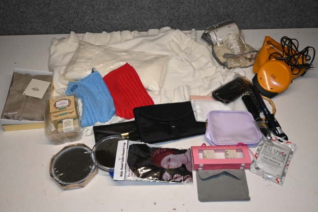 112. Parti vetekudde, sminkspeglar, hårborstar, hårtork m.m