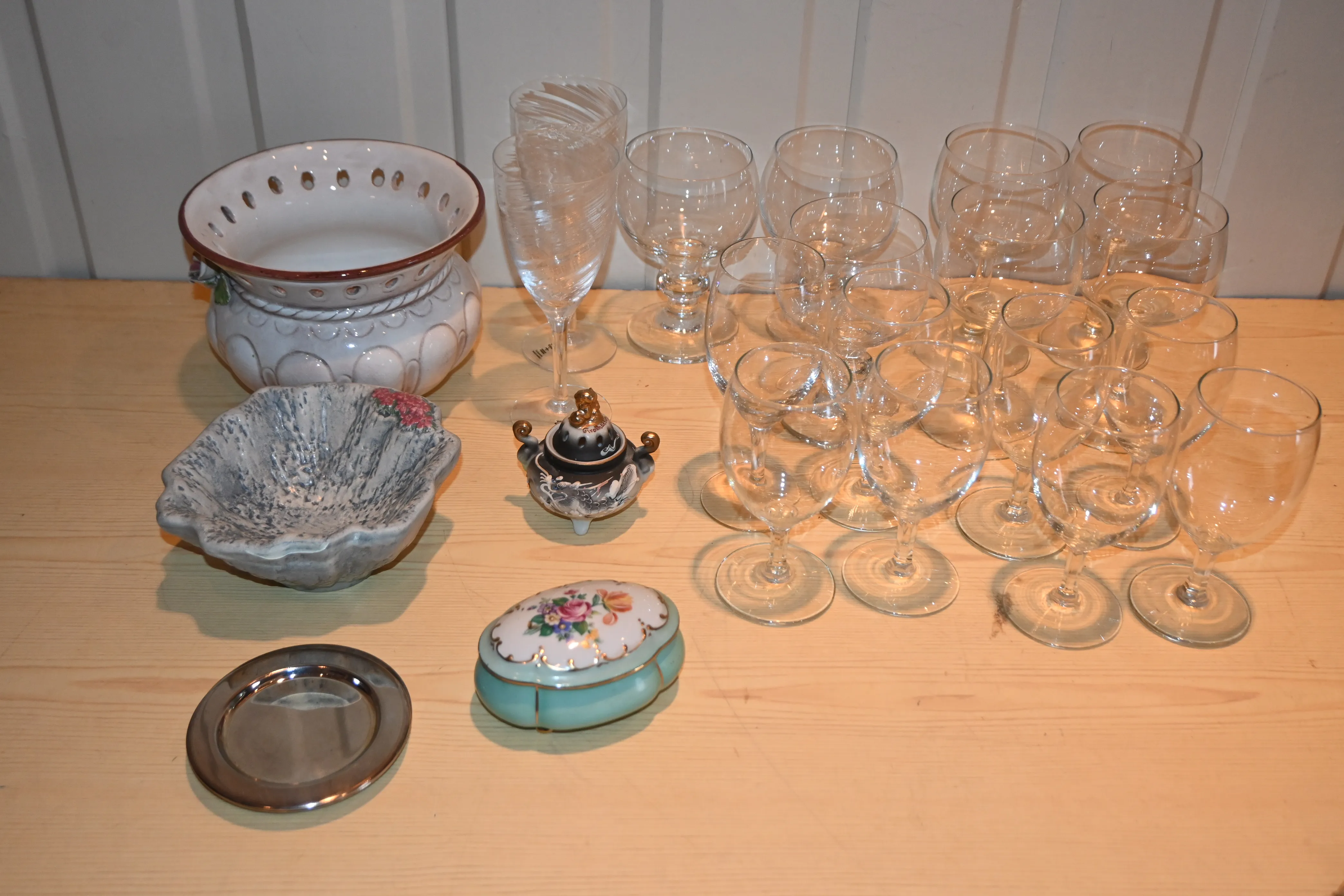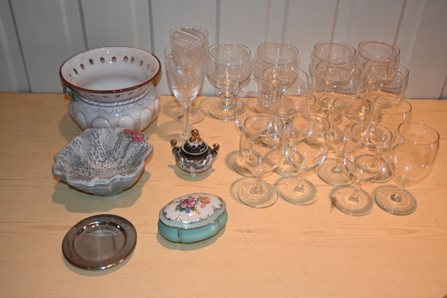 Parti vinglas bl a 2st Skruf, blomkruka, nipperask m.m