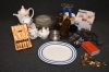 Parti whiskyglas, assietter, kaffeskedar, kaffeservisdelar (ngt nagg förekommer)