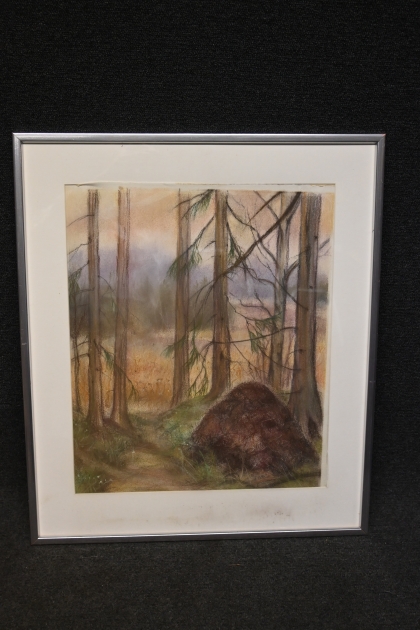 Pastell av Bibbi M.T Evermark 1989 "Myrstacken" mr.51x60cm