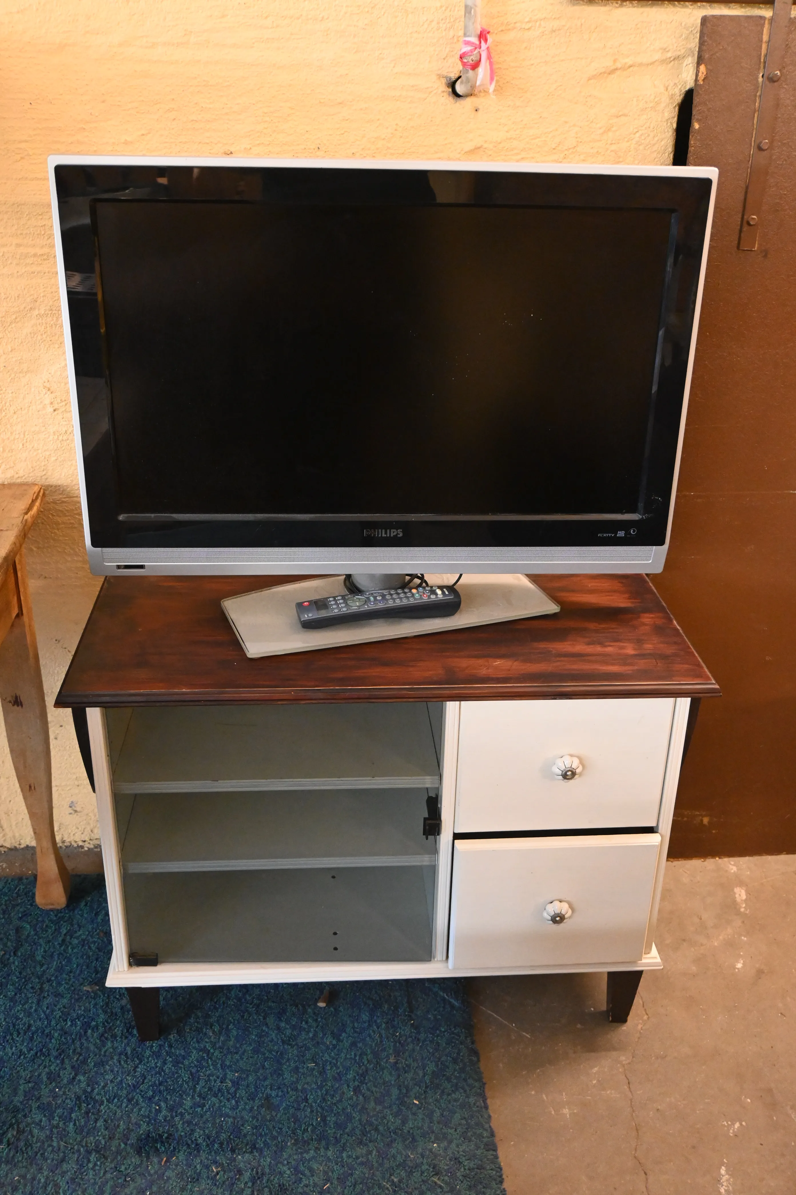 266. Philips platt-tv 32tum (fungerar) + tv-bänk