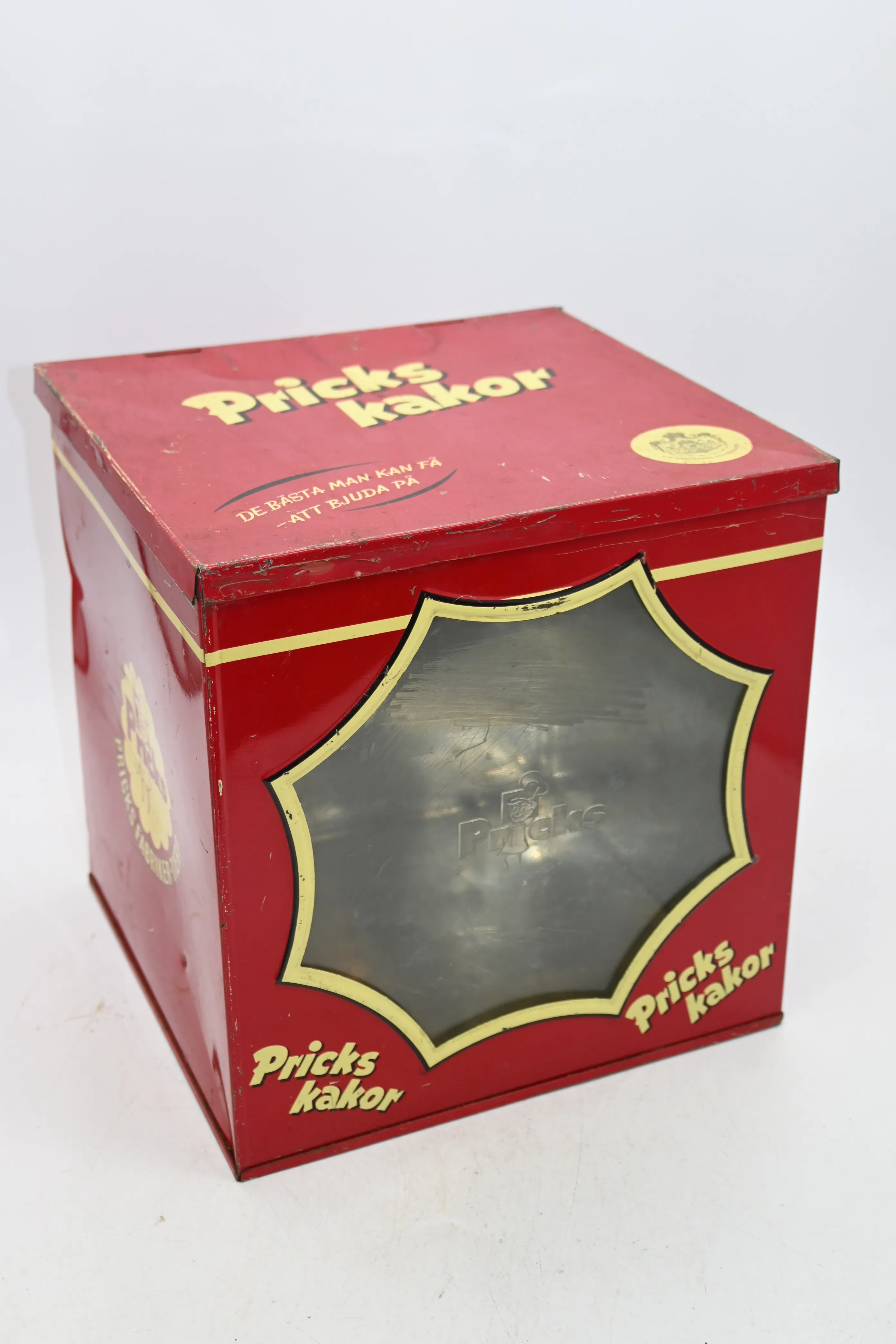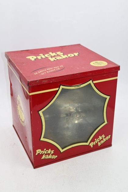 665. Plåtburk Pricks H.24cm B.23cm (plastglas och lite ytslitage )