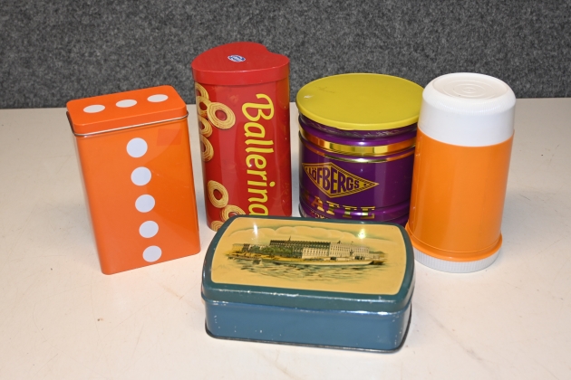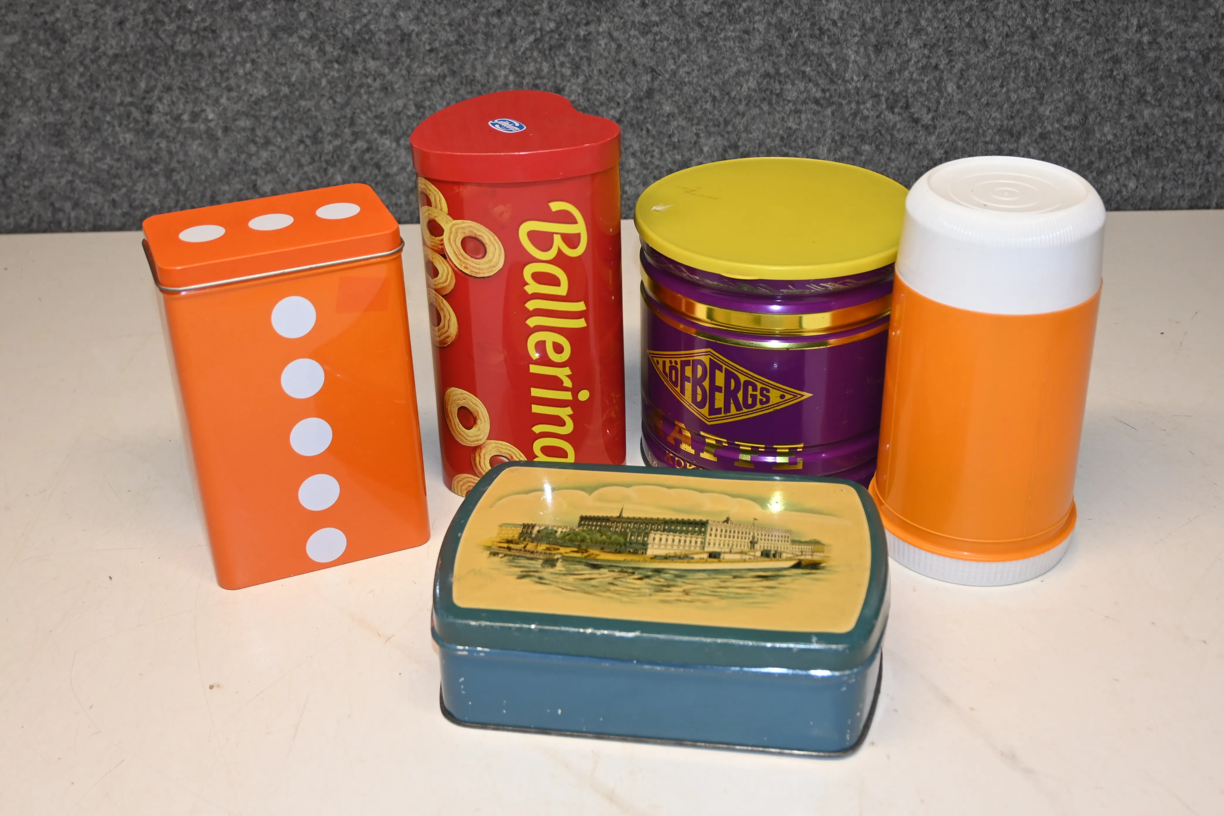 Plåtburkar bl a Ikea "Tripp" design Maria Vinka, termos