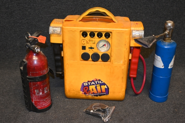 Portabel starthjälp 12v, brandsläckare & gasolbrännare med tub (samtliga behöver en genomgång)