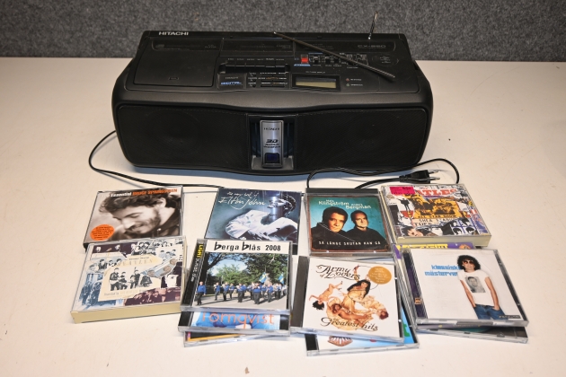 633. Radio/kassett/cd-spelare (fungerar, antenn defekt) + cd-skivor
