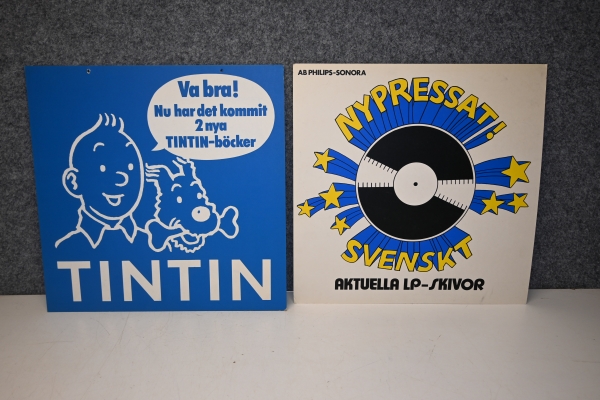 Reklamskyltar i papp 2st 50x50cm, Tintin & AB Philips-Sonora