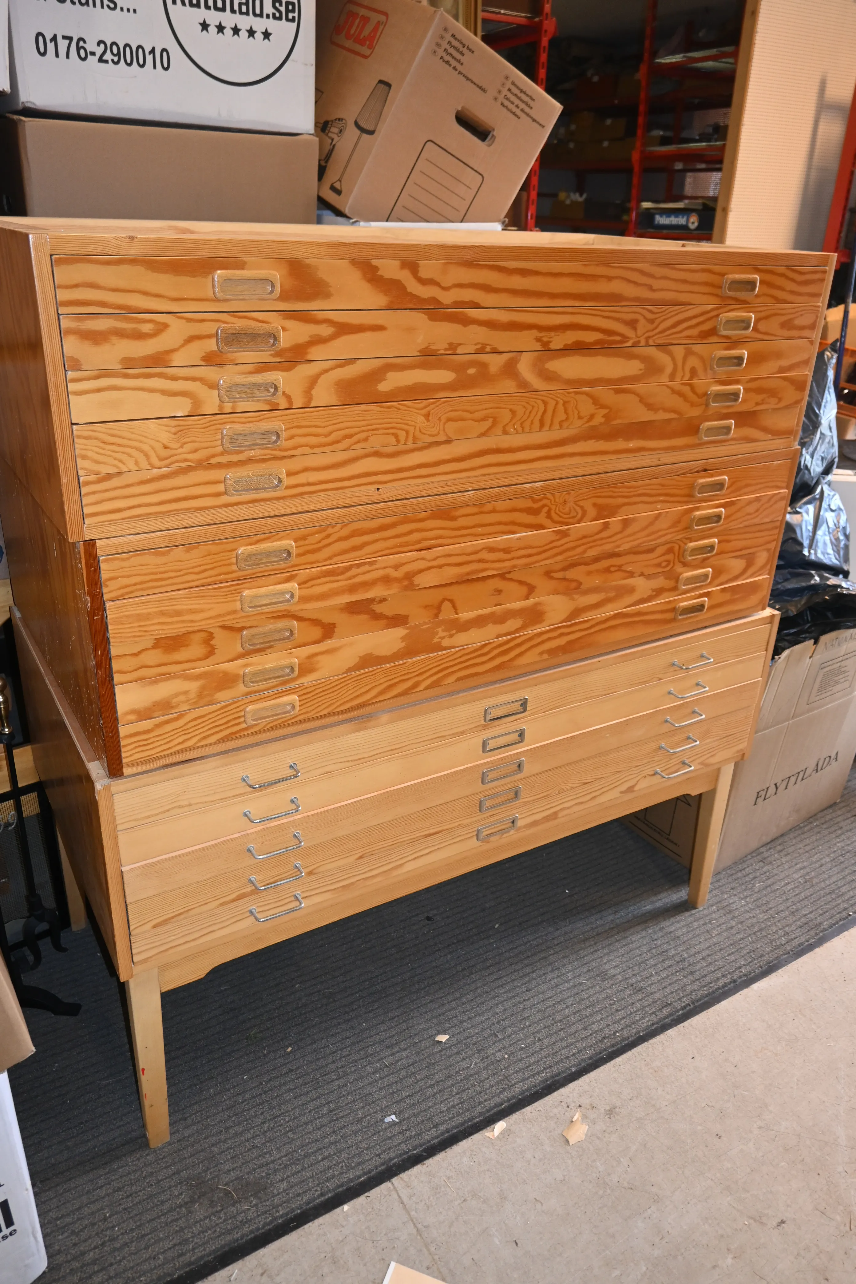 614. Ritningsskåp 3delat 5 lådor i varje del H.143cm B.135cm Dj.68cm