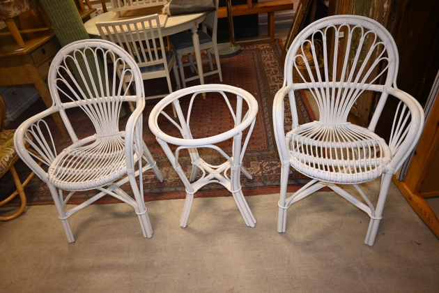490. Roting 2 fåtöljer +bord glasskiva saknas