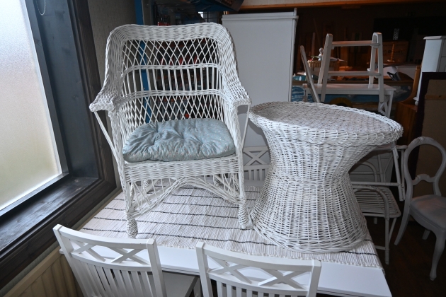 62. Köksbord L.140cm B.90cm H.75cm + 4st stolar (bruksslitage, märken förekommer)