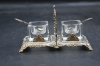 287. Salt & peppar, kristallinsats i silver samt skedar B.12.5cm vikt.64gr