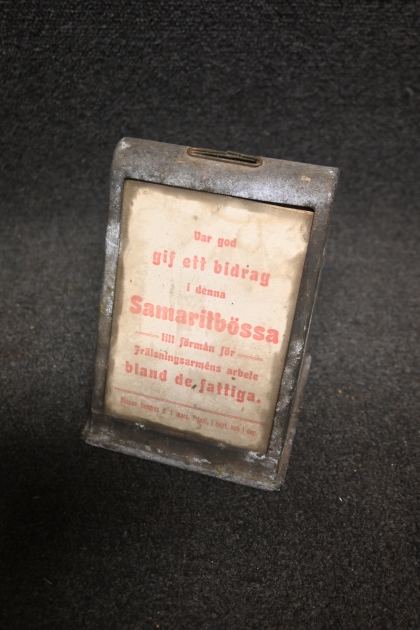 Samaritbössa för frälsningsarmen i plåt sekelsk 18/1900.tal H.15.5cm (botten saknas)