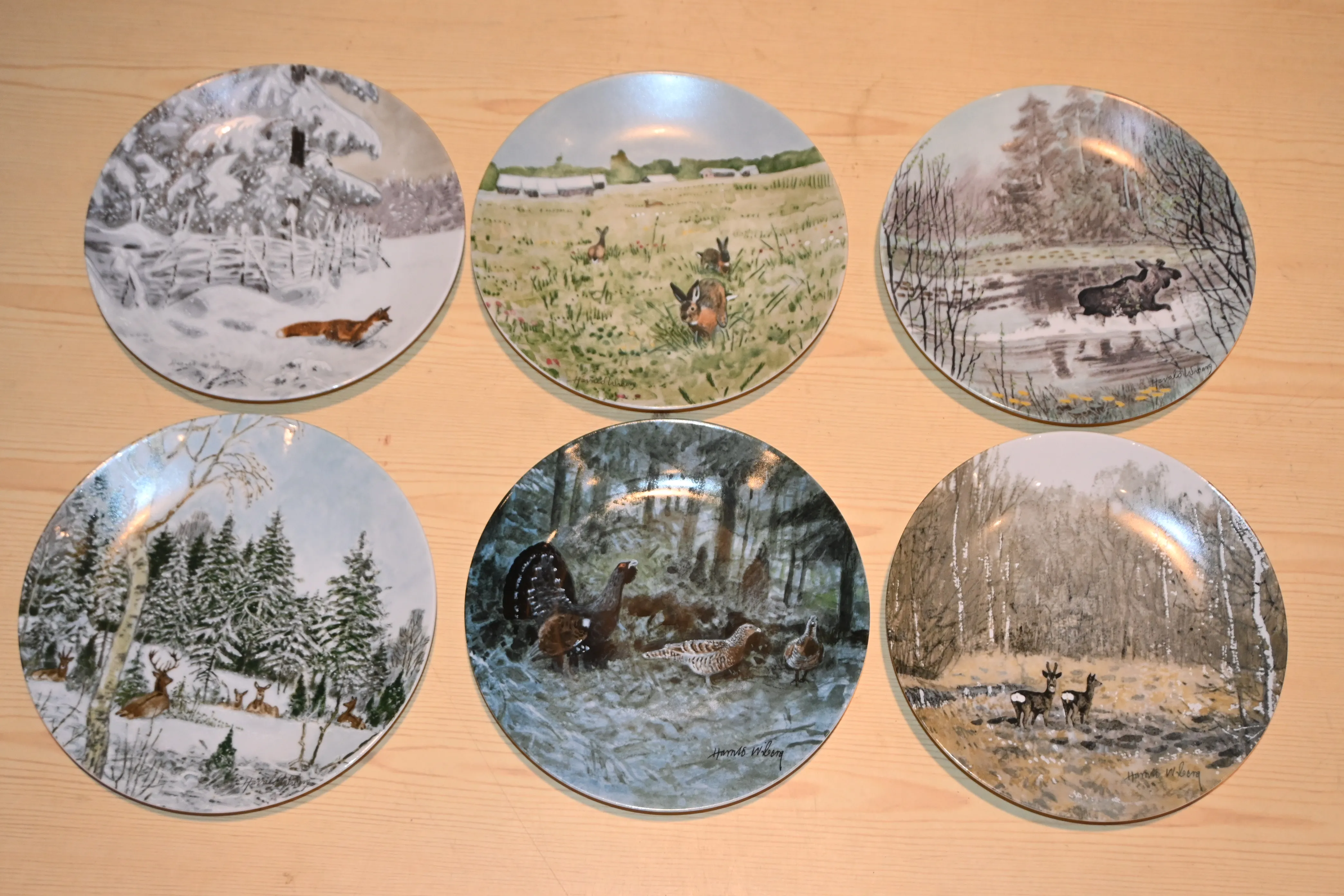 Samlartallrikar 6st, Rörstrand Ute I Naturen av Harald Wiberg D,21cm